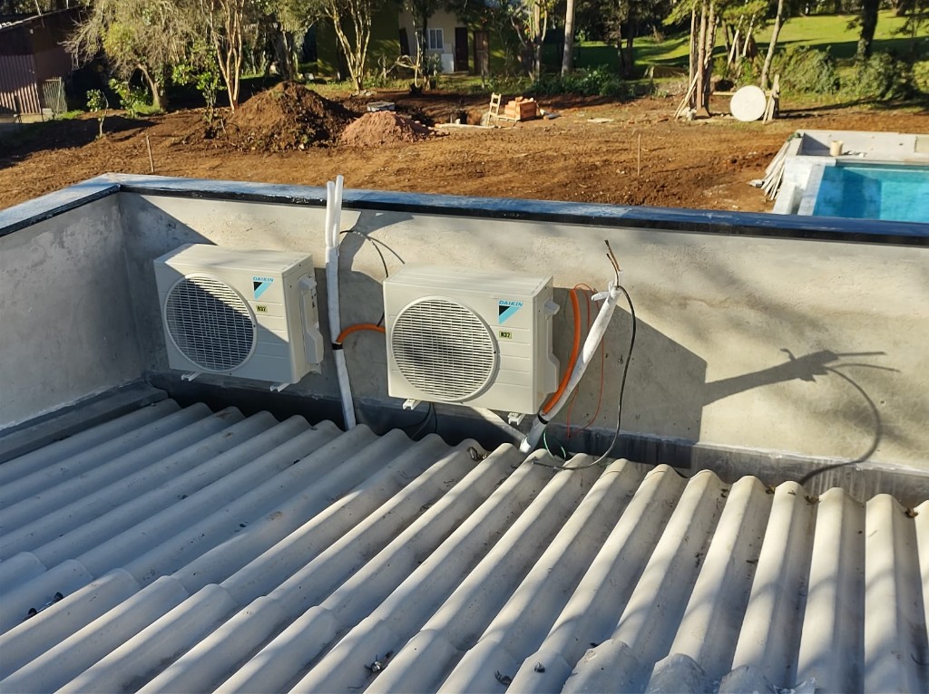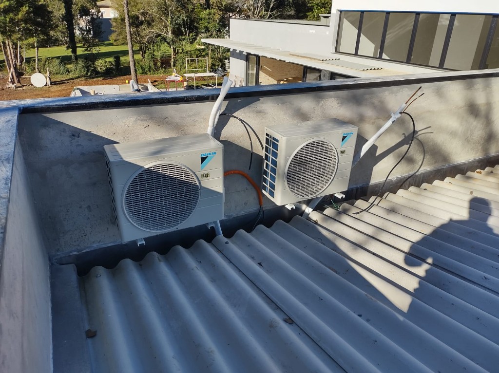 Em projetos residenciais, conforto e acabamento pesam tanto quanto desempenho. A instalação foi planejada para manter unidades externas organizadas e garantir boa performance do sistema.